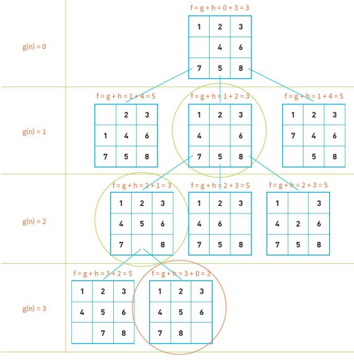 8-puzzle 에서의 A* 알고리즘