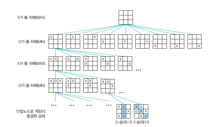 - 틱택토 게임에서의 미니맥스 예시 -