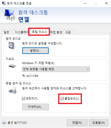 근데 원격 데스크톱 사용 중 로컬PC와 복붙(Ctrl+C, Ctrl+V)이 안된다면?