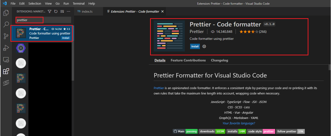 자세한 내용은 prettier 확장 도구 설치 화면에 나타난 prettier 도움말을 참고하세요!