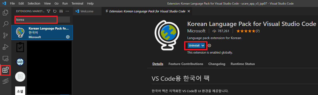 Scoop으로 설치한 VSCode는 기본으로 영문 버전인데, 이를 한국어로 바꾸려면 언어 팩을 설치해야 합니다.