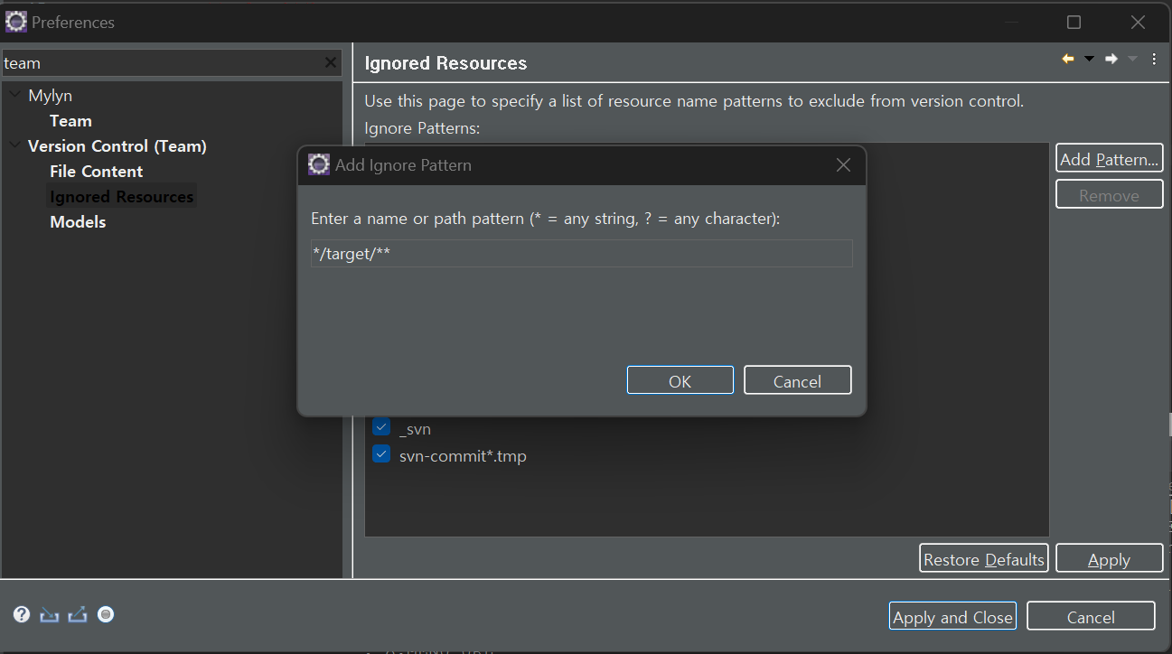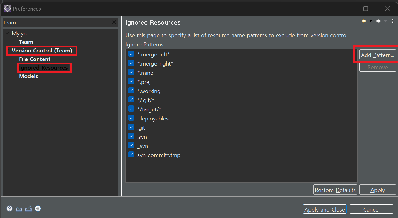 1.Window -> Preferences -> Version Control(Team) -> Ignored Resources