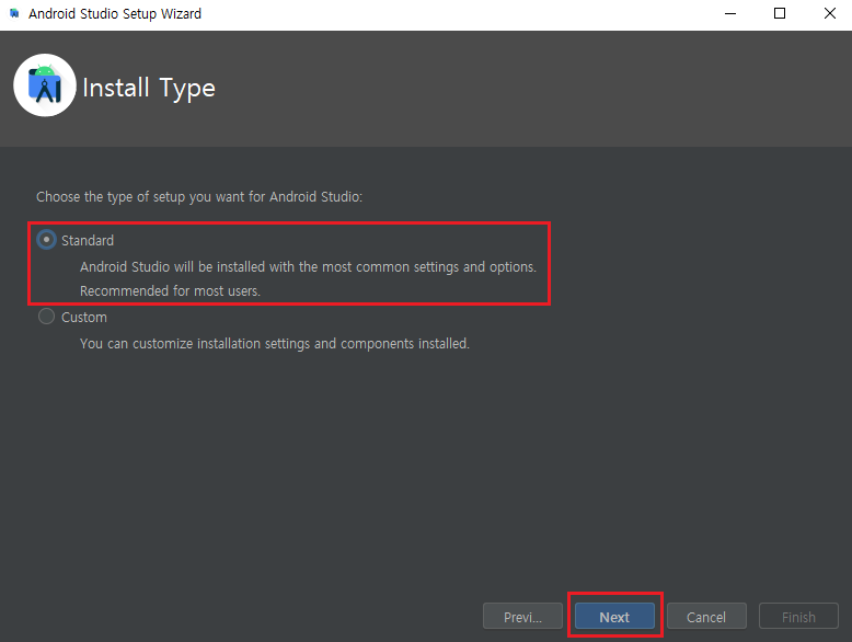Standard는 안드로이드 스튜디오에서 추천하는 표준 방식이고